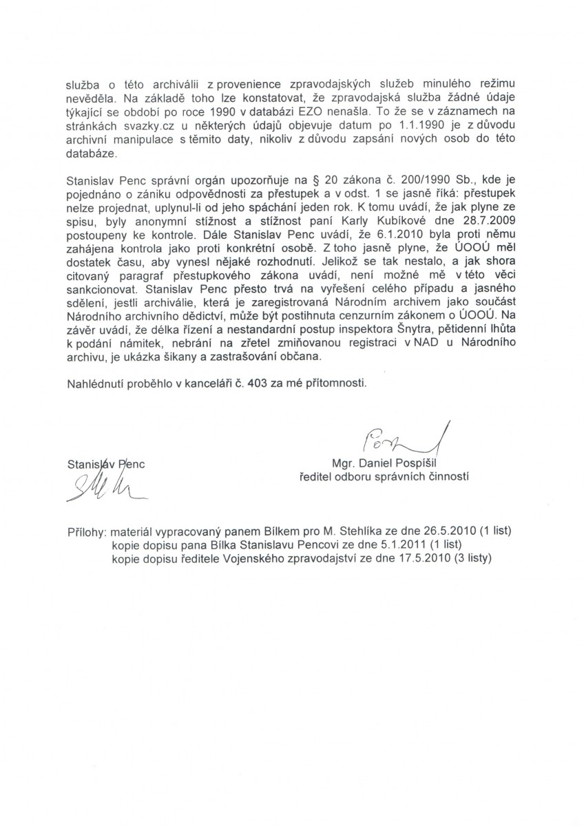 Doplnění informací do spisu ÚOOÚ 10.ledna 2011